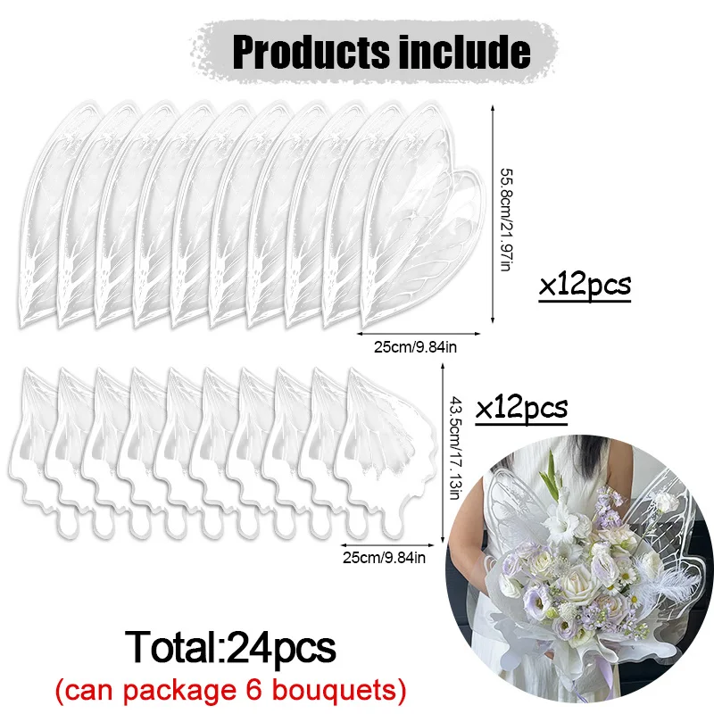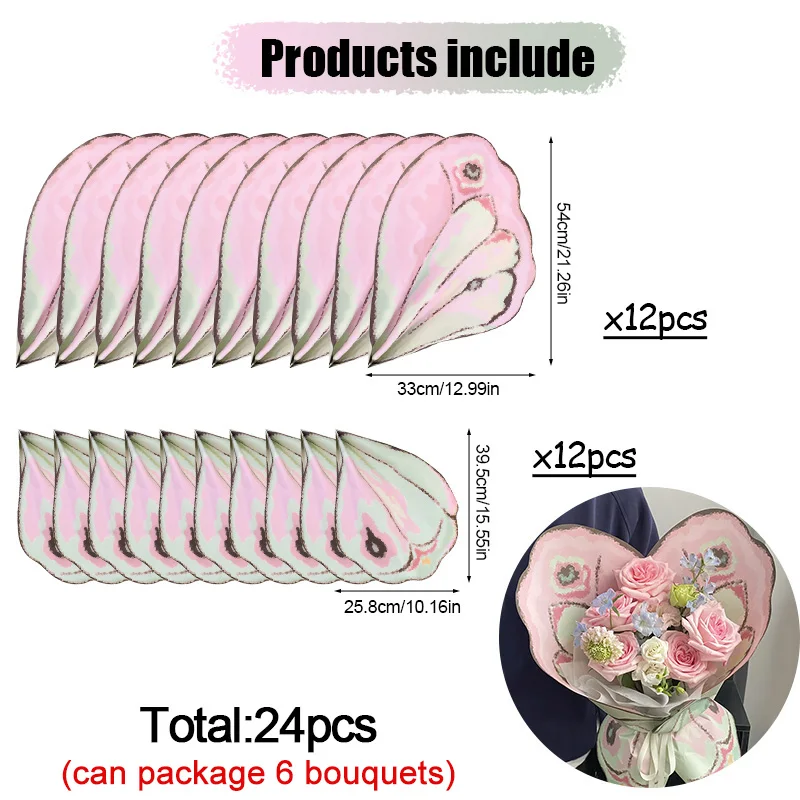Each pack contains 24 butterfly wings of wrapping paper, 4 pieces of flower paper make up a complete butterfly wing, you can create a total of 6 sets of wings to wrap 6 flower bouquets.