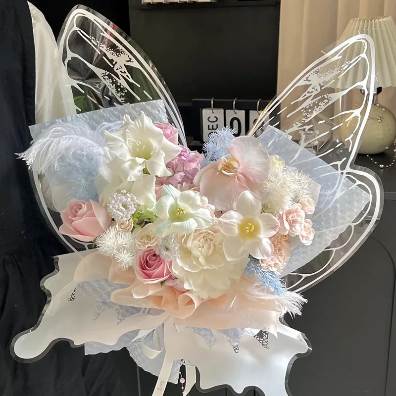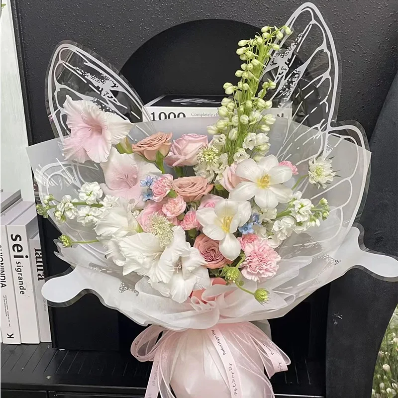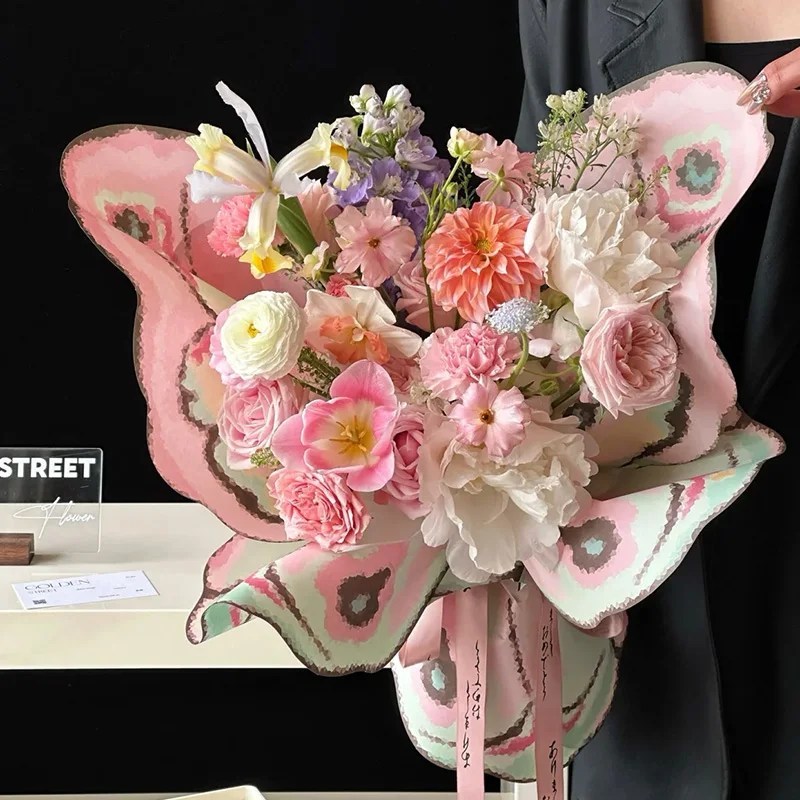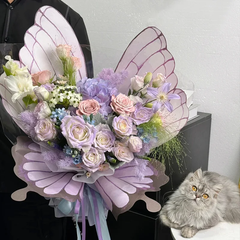 【User-Friendly】The butterfly flower wrapping paper bouquet is effortless to handle, especially ideal for beginners. Once the package is opened, simply lay the wrapper flat for a while to restore its shape.